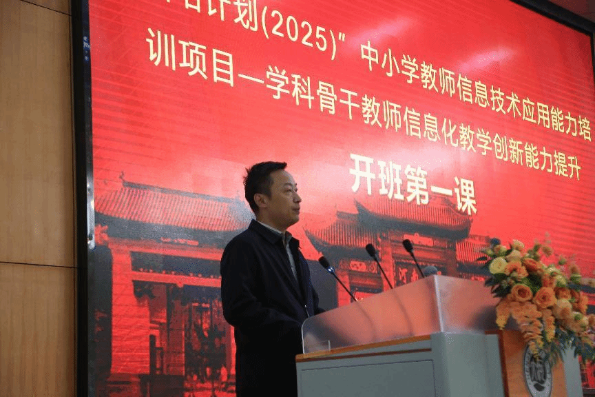 承办的“国培计划(2025)”中小学教师信息技术应用能力培训——学科骨干教师信息化教学创新能力提升培训班,在学院201会议室隆重开班。学院执行院长韩道军、副院长张勇、继续教育办公室主任姚莉、班主任丁文珂等出席活动,仪式由丁文珂老师主持。