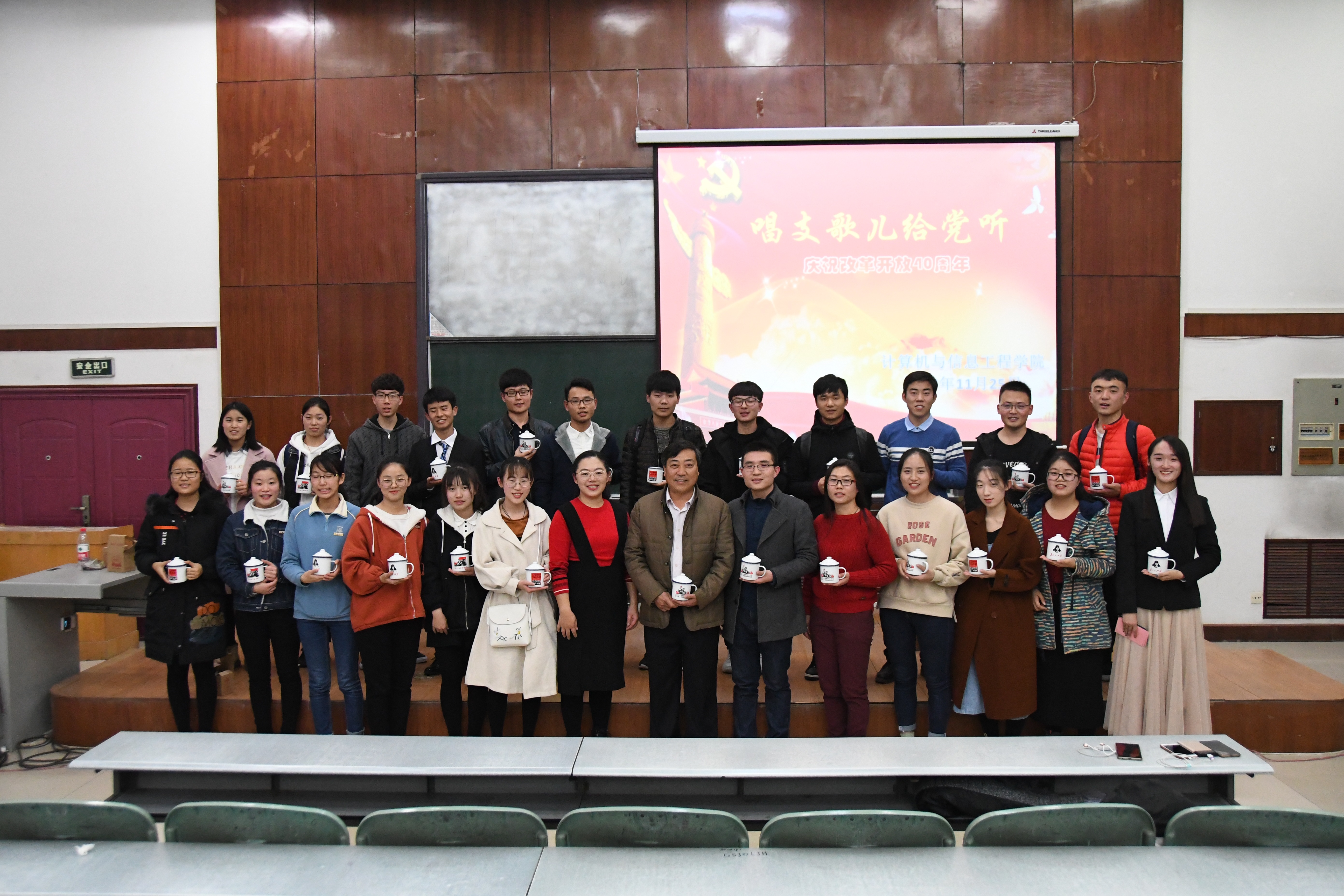 在计算机大楼103教室,举办了“唱支歌儿给党听”主题党日活动。学院辅导员老师及各学生党支部近200名党员和入党积极分子参与了此次活动。今年是改革开放40周年,40年来,中国共产党带领全国各族人民不忘初心、牢记使命,砥砺前行,开拓进取,取得了举世瞩目的成就。这次麻豆成人