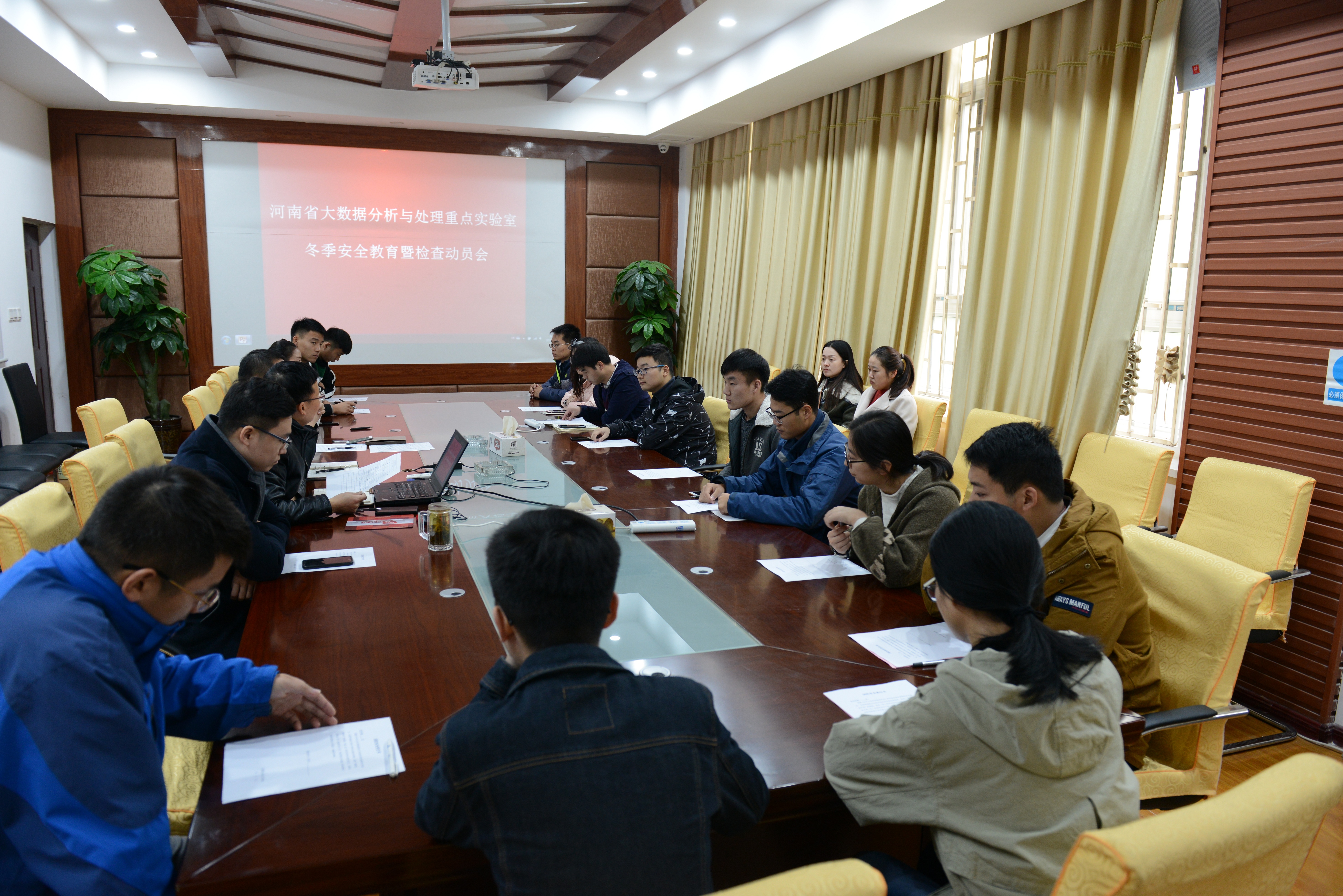 11月7日上午,河南省大数据分析与处理重点实验室在曾宪梓楼104会议室召开了冬季安全教育暨检查动员会。会议参加人员主要有实验室副主任葛强、遥感信息处理团队负责人左宪禹、实验室管理人员许逸飞、17和18级班委,以及各实验室学生负责人。会议由葛强主持。