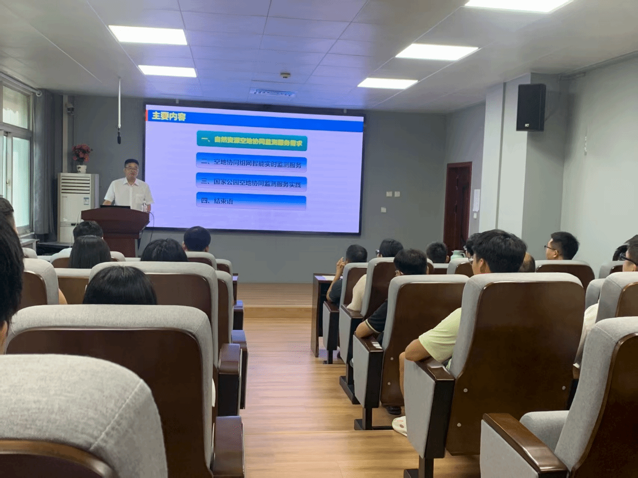 师生作了主题为《自然资源空地协同监测关键技术及应用》的学术报告,会议由学院副院长左宪禹主持。会议在曾宪梓楼205会议室举行,学院教师和研究生60余人参加了本次报告会。