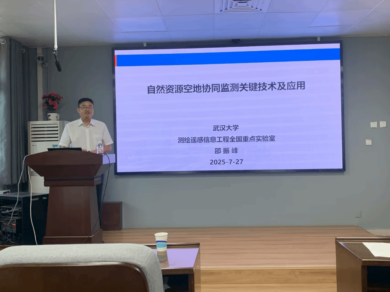 报告会上,邵振峰教授首先介绍了面向自然资源要素开发利用和保护监测需求,研究了自然资源空地协同遥感监测关键技术。随后,提供了不同空间尺度面向需求的自然资源遥感监测解决方案。接着,分享了天空地多平台协同监测技术在国家公园监测中的应用实践。最后,详细介绍了具体内容,包括融合多模态遥感数据的周期性监测、融合遥感和视频数据的实时监测技术、异常行为自动识别和预警等,并面向自然资源监管需求,分享了遥感影像和视频数据的实时融合应用。