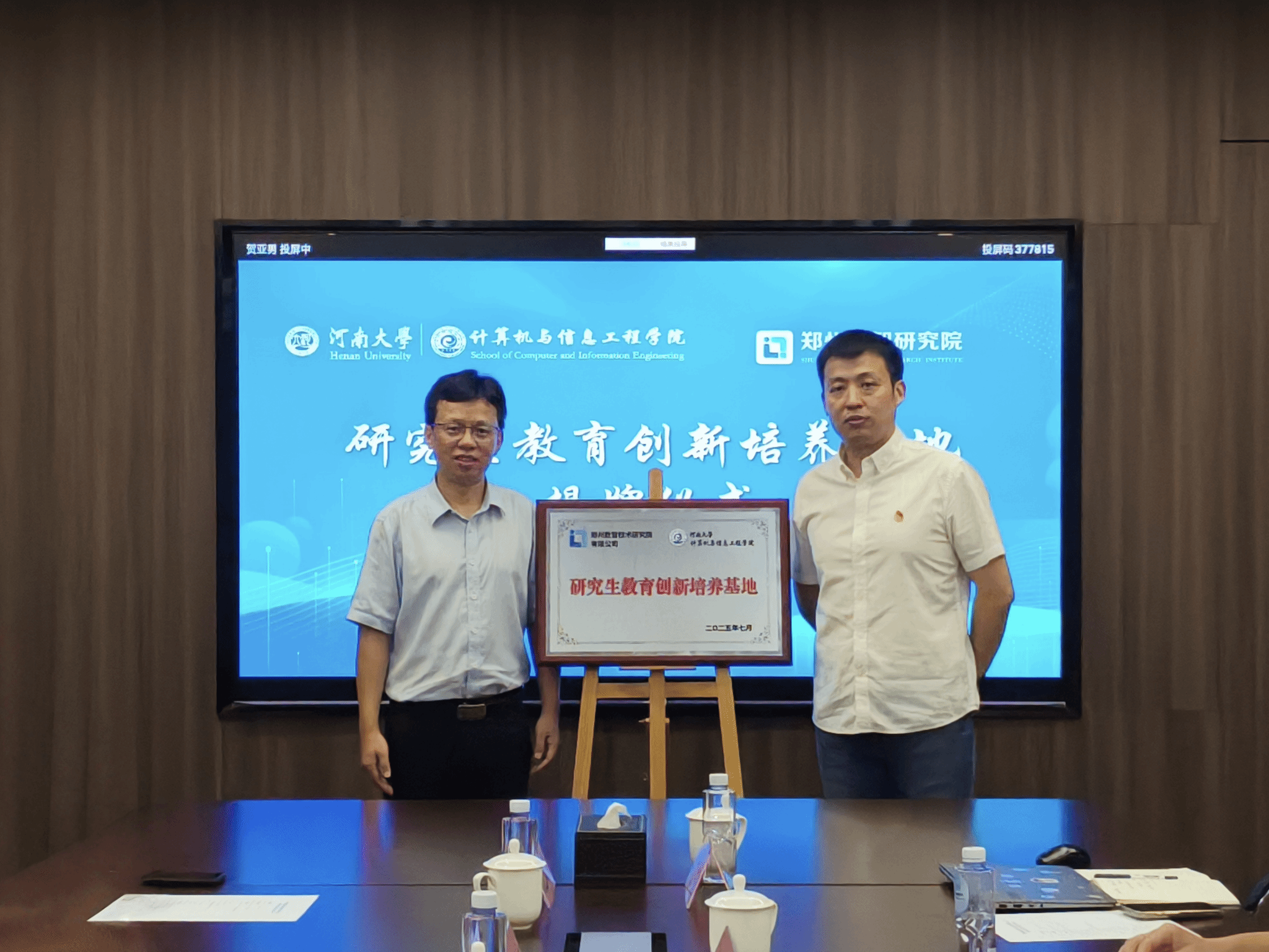 -郑州数智技术研究院有限公司研究生教育创新培养基地揭牌仪式,韩道军和程杨共同为研究生教育创新培养基地揭牌。