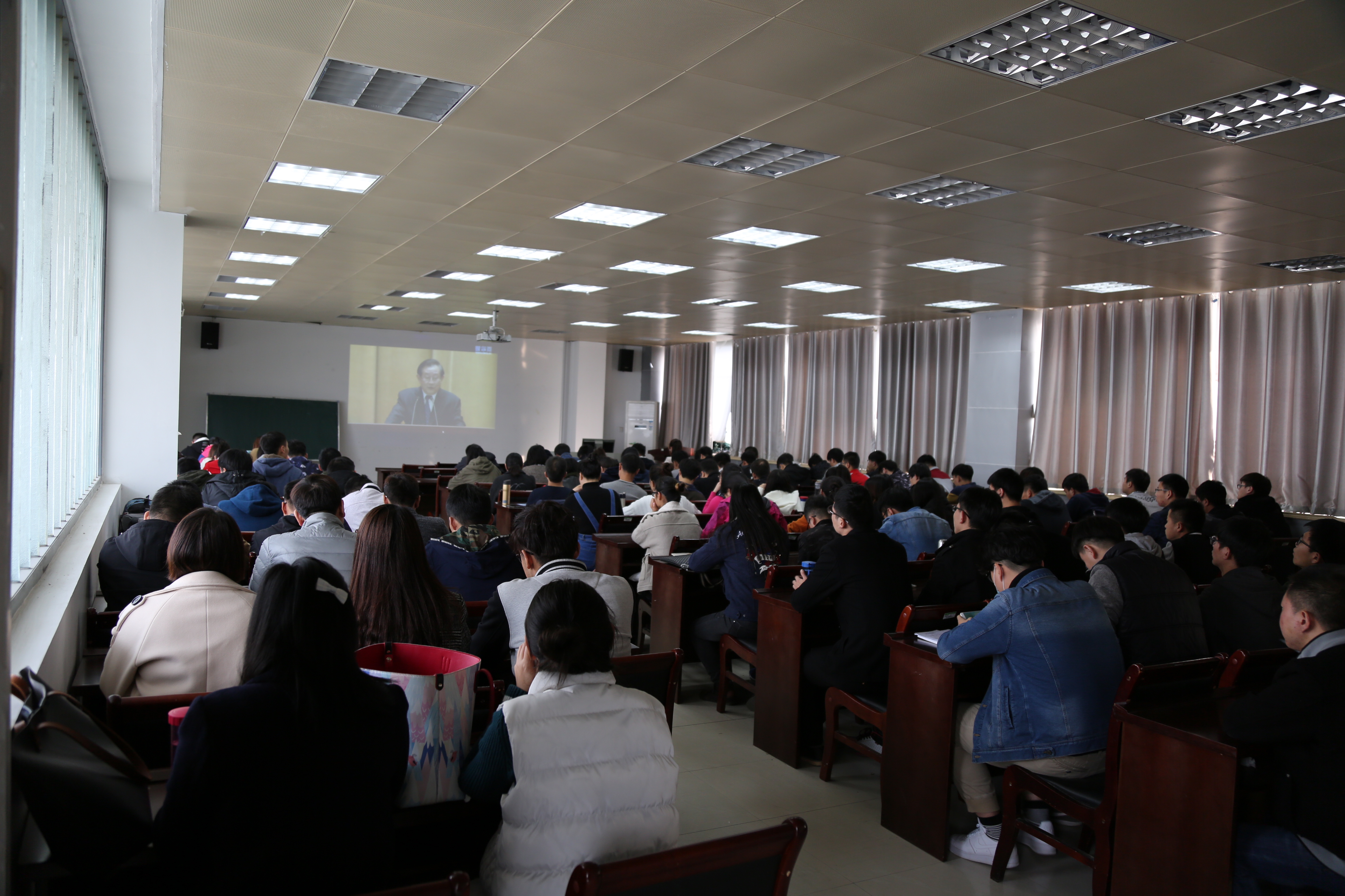 2016级和2017级140余名研究生在学院603会议室通过网络视频同步收看了报告会。