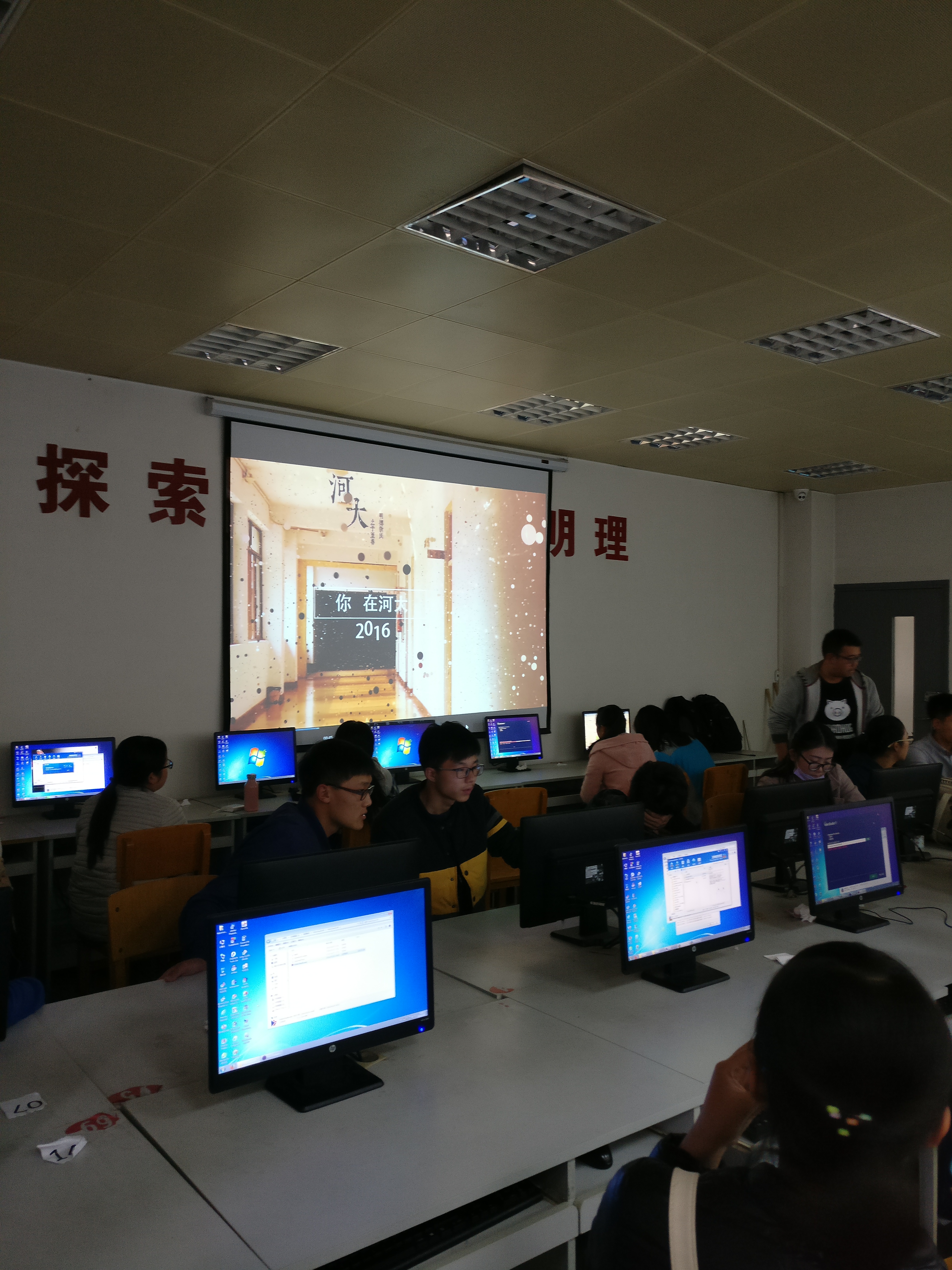 青协在计算机学院606机房(培训地点)以及一楼大厅安排了引导志愿者以便其他院的志愿者找到培训地点。