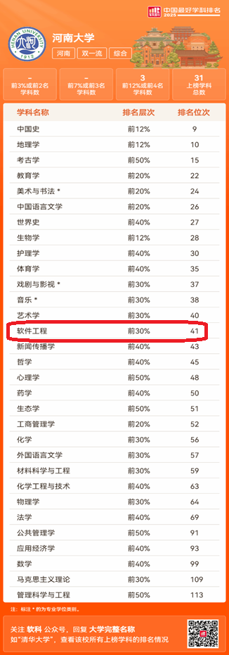 软件工程学科排名41位,位列全国前30%。