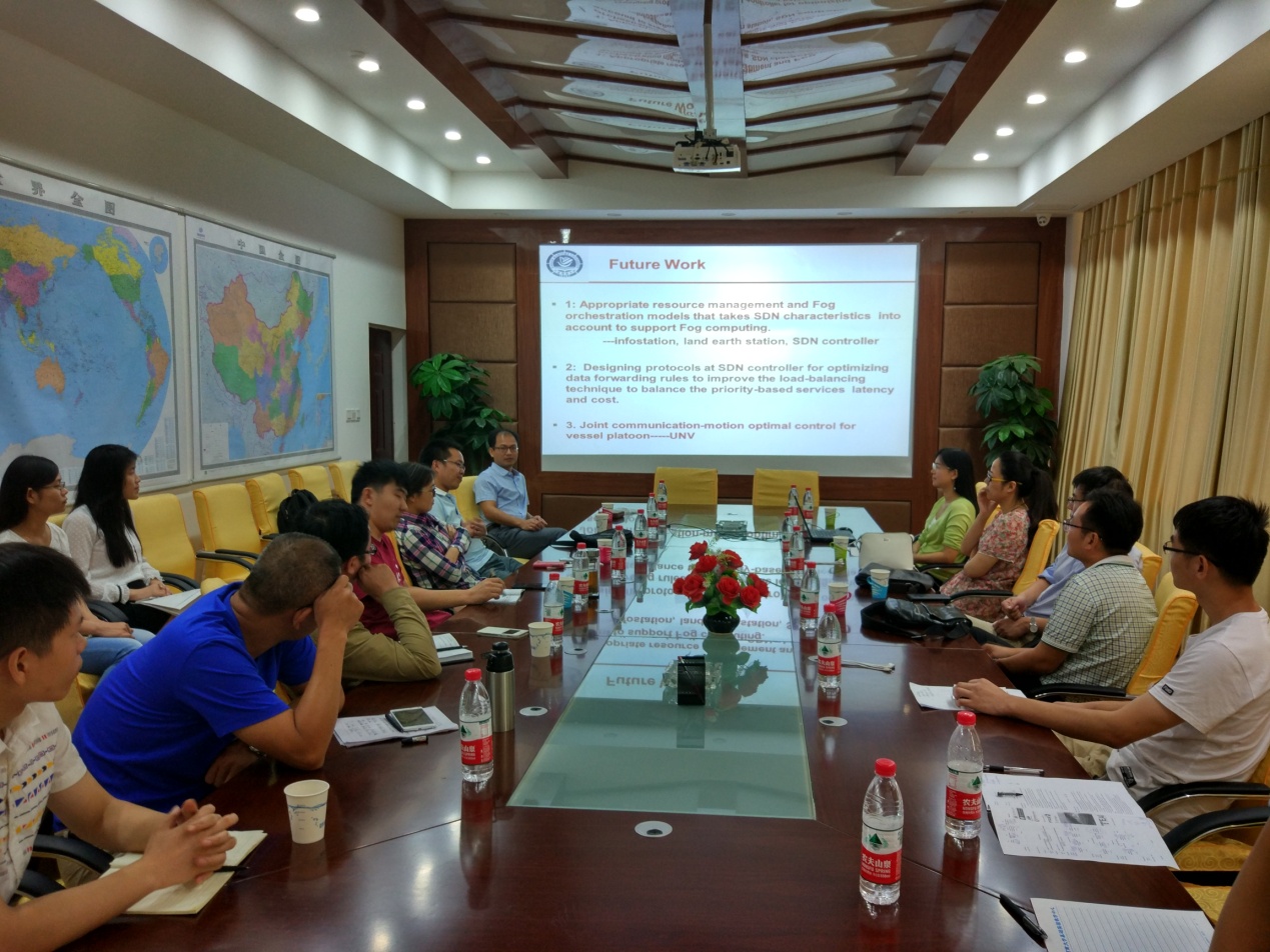 车联网协同技术实验室,就车联网、船联网及智慧港口领域的合作进行了深入交流。17日,车联网实验室全体成员在曾宪梓楼欢迎杨博士来访,周毅博士代表实验室介绍了车联网协同技术团队的研究概况及相关成果,并向杨博士现场展示了车联网示范平台的运行情况;18日,杨婷婷博士在曾宪梓楼报告厅作了专题学术报告“Maritime Cyber Physical Systems: Extend Wideband and Intelligent Transportation Services from the Land to the Ocean”,报告重点阐释了海事通信网络的CPS模型分析、SDN雾计算、异构平台构建等关键创新问题,车联网实验室成员与杨博士展开了激烈讨论,深入挖掘“空地一体化协同网络平台”建设中的潜在合作领域,并在车联网技术相关的具体研究点上达成共识。