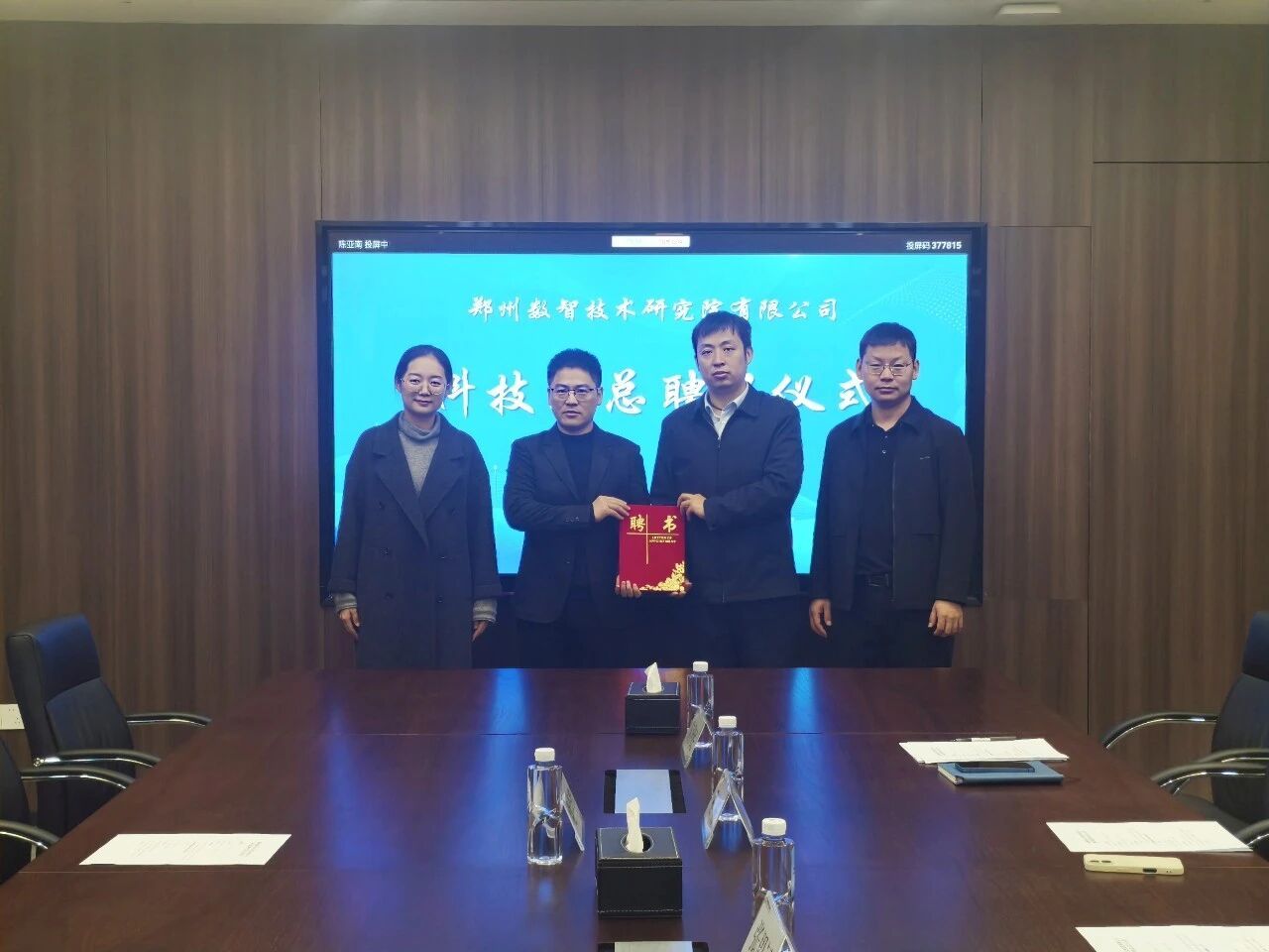 党兰学教授受聘郑州数智科技集团数智技术研究院首位“科技副总”仪式在郑州举行,郑州数智科技集团数智技术研究院董事长程杨为党兰学颁发聘书。