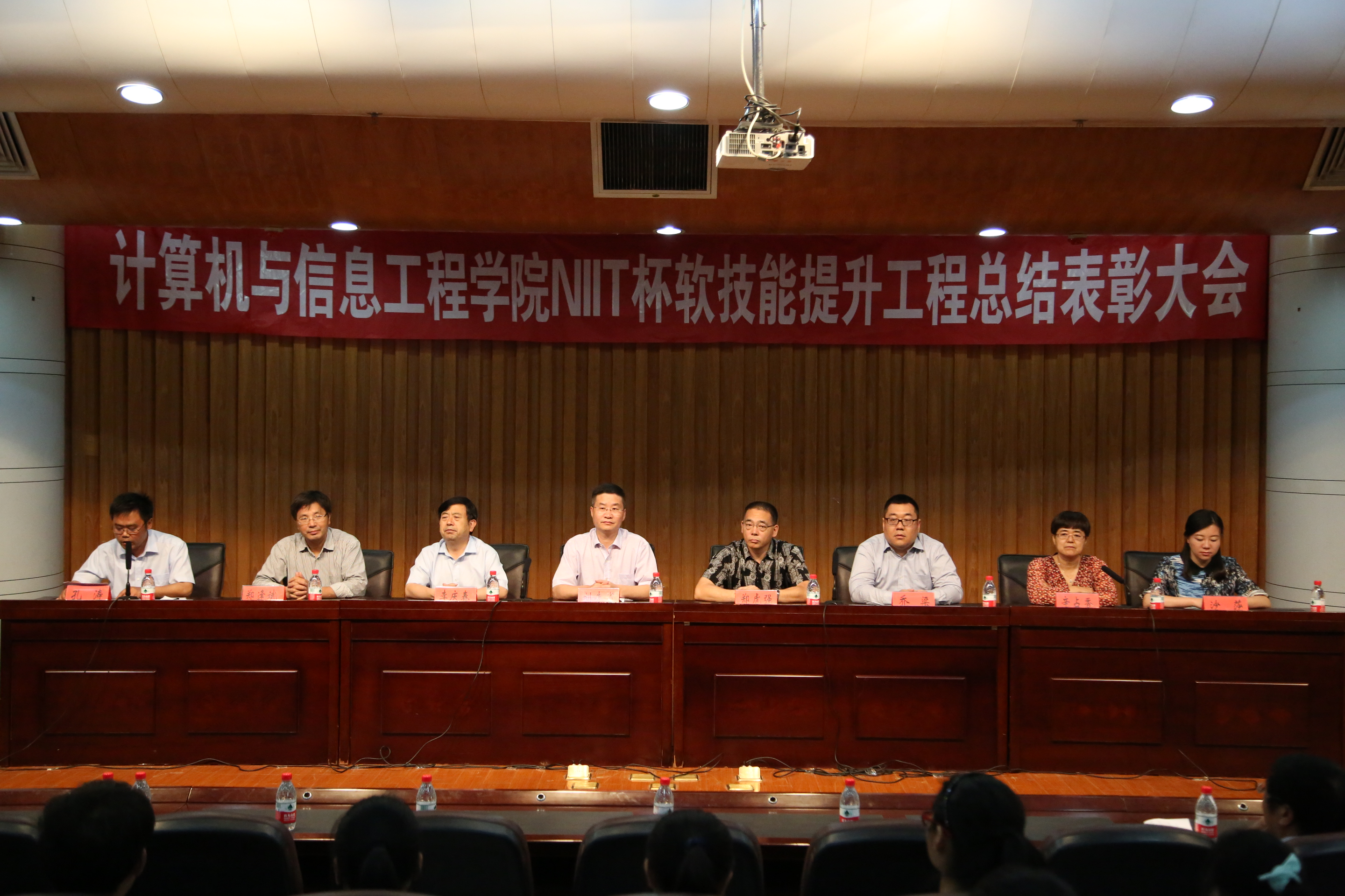 “NIIT杯”软技能提升工程总结表彰大会在金明校区行政大楼二楼报告厅举行。副校长刘先省、无锡NIIT实训基地副校长郑虎强、党委宣传部部长李庆春、就业指导与服务中心主任乔梁、校团委副书记沙莎出席会议,学院领导成员以及三百余名师生代表参加表彰大会。会议由学院党委副书记孔涛主持。