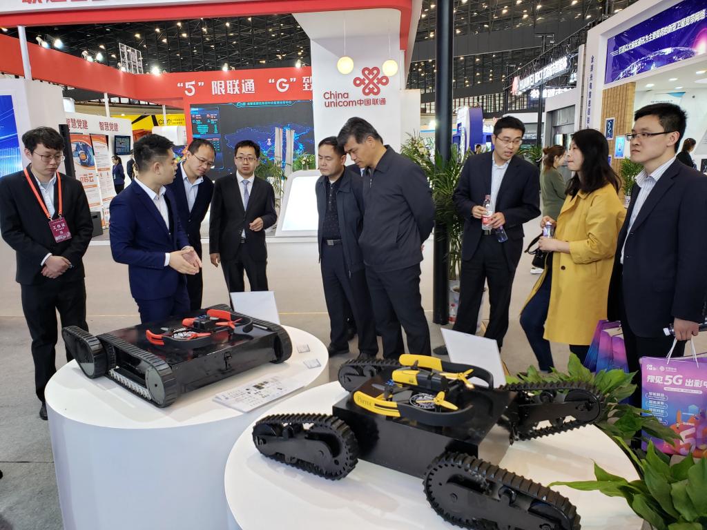 参展的“5G机器人”成果能应对复杂地形,实现智能识别、协同感知和自主决策,可广泛应用于工业生产、抢险救灾、公共安全、军事作战等领域。