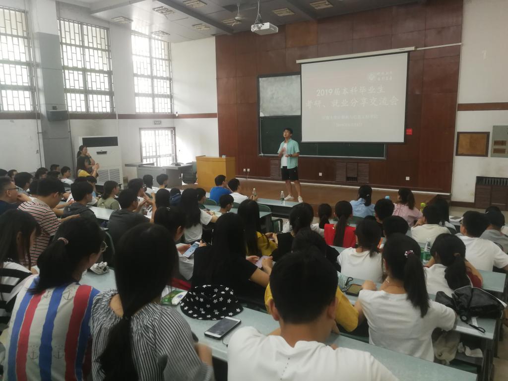 于计算机大楼104教室举办了“再送2019届毕业生最后一公里”考研、就业分享交流会,学院教师代表、2019届优秀毕业生代表和2016级本科生参加了交流会。会议由学院党委办公室主任、2016级辅导员魏丹老师主持。