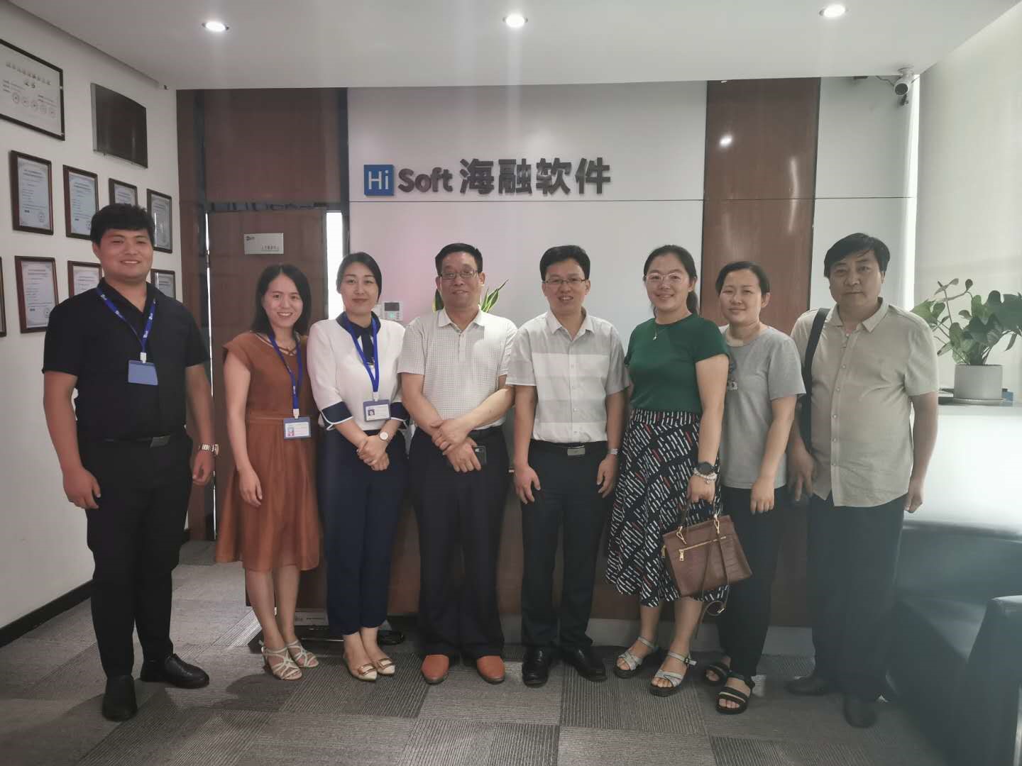 2019年6月10日,麻豆成人 党委副书记柯杨、教学副院长韩道军、魏丹、鲁建国和贾培艳等一行五人到河南海融软件有限公司参观、考察。