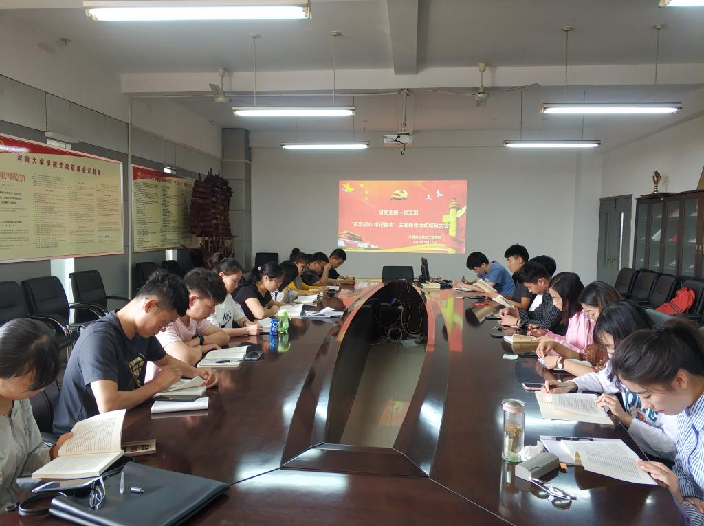 研究生第二支部组织阅读与发言相结合形式来开展此次学习。各位党员在对《习近平新时代中国特色社会主义思想学习纲要》第一章的学习后,从实际出发,结合近期以来相关事件以及自己的日常生活经历,分别从生活、科研以及社会发展等方面具体阐述了自己对于新时代中国特色社会主义的了解,在把握习近平新时代中国特色社会主义思想下,回顾共产党人的初心以及历史使命,以彻底的自我革命精神解决违背初心和使命的各种问题,各位党员也表示要在日常生活中充分发挥党员模范先锋作用,做到知行合一,并将“不忘初心、牢记使命”精神认真贯彻。