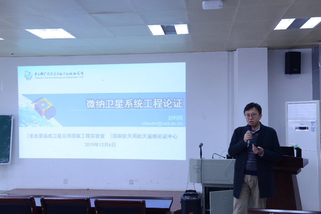和河南省大数据分析与处理重点实验室的八十余名师生到场聆听。报告由河南省大数据分析与处理重点实验室左宪禹主持。首先,赵利民博士简单介绍了随着航天器设计与制造技术、微电子技术、微光机电技术、系统集成技术等发展,微纳卫星得到突飞猛进的发展。然后介绍了微纳卫星通过分布式、星群式对地观测,形成极高的地表遥感信息采集能力,为地表遥感信息产品的生产提供及时、高效的数据资源。最后,赵利民博士重点介绍了微纳遥感卫星的技术特征和系统结构,并从应用需求和应用技术水平的角度,对微纳遥感卫星体系的评价、发展进行了展望,是卫星遥感系统的通识性报告,适合与具有计算机、自动化、遥感与测绘等背景的研究生或高年级本科生交流讨论。报告深入浅出,用日常生活中的例子将原本专业化的微纳卫星系统工程论证讲解地通俗易懂、生动有趣。报告在师生们热烈的掌声中结束。