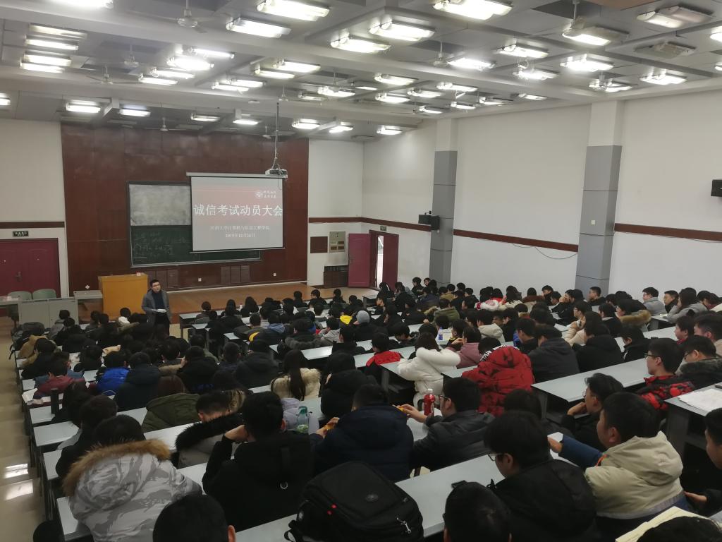 宣传教育从学院、年级、班级层面分别展开。学院制作电子宣传海报,在学院大厅电子屏滚动播放,并通过微信公众号推送诚信考试相关内容;2017级召开年级“诚信考试动员大会”;2018级组织学生进行诚信考试宣誓并签订承诺书;2019级组织召开主题班会进行诚信考试教育。