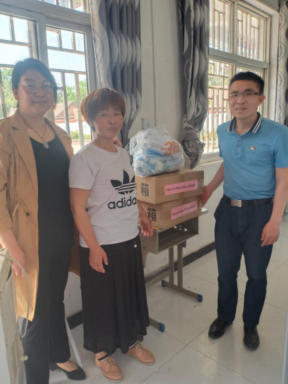 程前帅带着物资前往谷营小学,亲自交到校长宋玉荣手中,宋校长表示防疫物资会送到贫困学子手中,温暖也会送到他们心中,同时谷营小学向麻豆成人