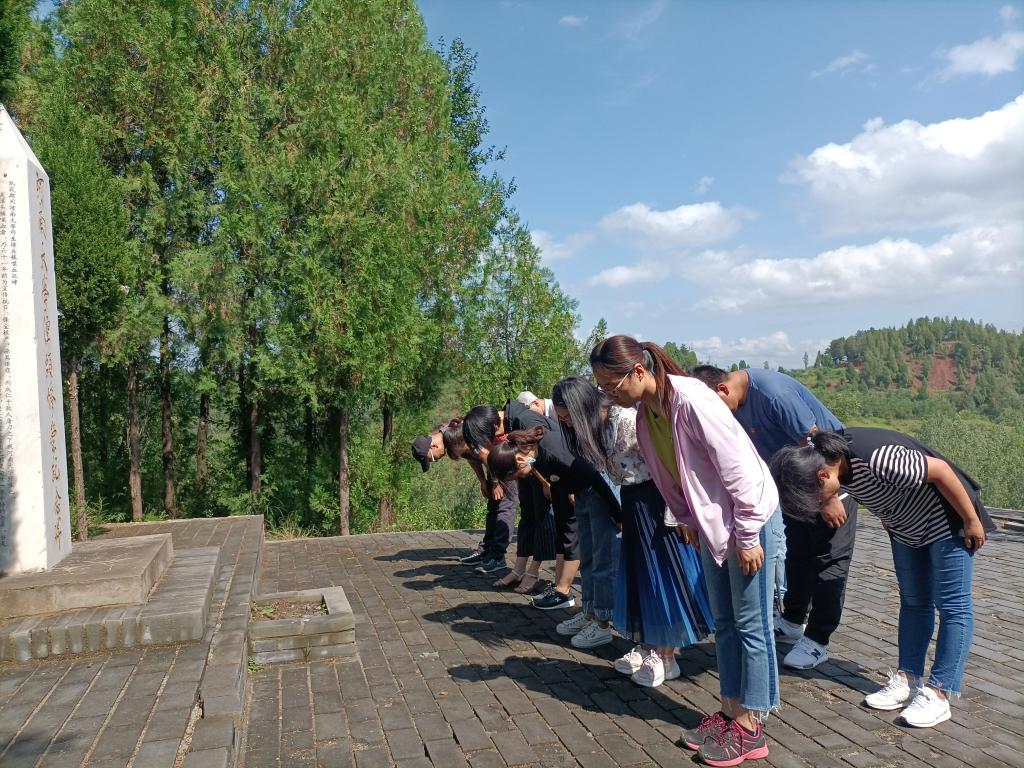 潭头惨案纪念碑处,在纪念碑前为牺牲的河大师生三鞠躬,缅怀先烈。