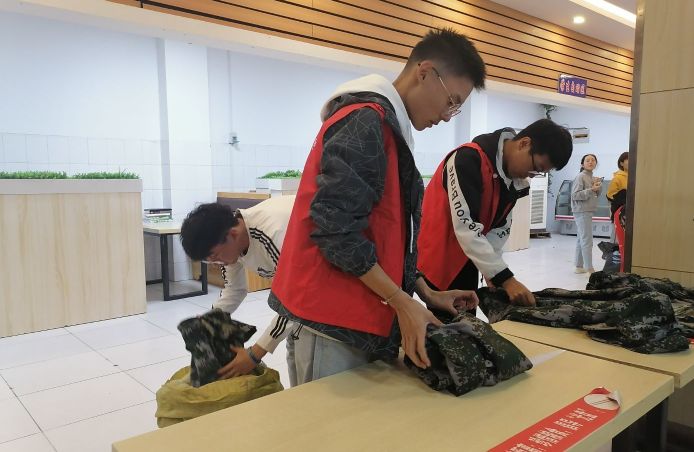 活动正式开始之前,志愿者们便通过线上和线下宣传让同学们知晓了军训服的公益用途及募捐方式。5日中午,志愿者们静守摊位,开始收集并登记同学们热情捐赠的军训服信息。当天晚上,志愿者们以小组的形式进入宿舍楼,本着自愿、不强求的原则,“挨家挨户”地为同学们讲解军训服的回收用途和真实去处。同学们积极捐出自己的军训服,并表示:“积善成德,何乐而不为?”。在同学们的踊跃捐献和志愿者们的积极引导下,活动顺利进行。6日晚,军训服被志愿者们集中分类、整理、安置。