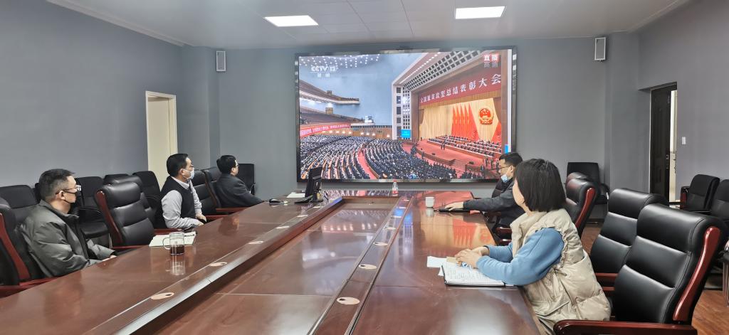 领导班子齐聚学院302会议室集中收看了全国脱贫攻坚总结表彰大会实况,其他师生则采取自行收看的形式共同聆听习近平总书记在表彰大会上的重要讲话,共同感受这一历史伟业的巨大成果。