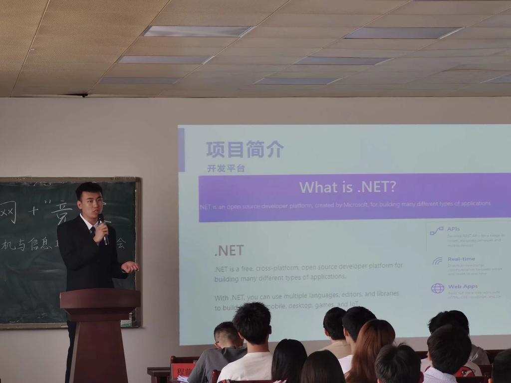 选拔赛启动以来,学院高度重视,统一安排,动员学生积极参赛备赛,学院团委创新实践部主要负责比赛的宣传、材料收集以及大赛的组织,为大赛的顺利进行提供了保障。比赛过程中,各个参赛队伍通过PPT深入浅出地讲解团队项目创新之处以及项目规划,充分展示了学院学子积极进取的探索意识和创新精神,评委老师针对每一组作品进行针对性的提问和点评。