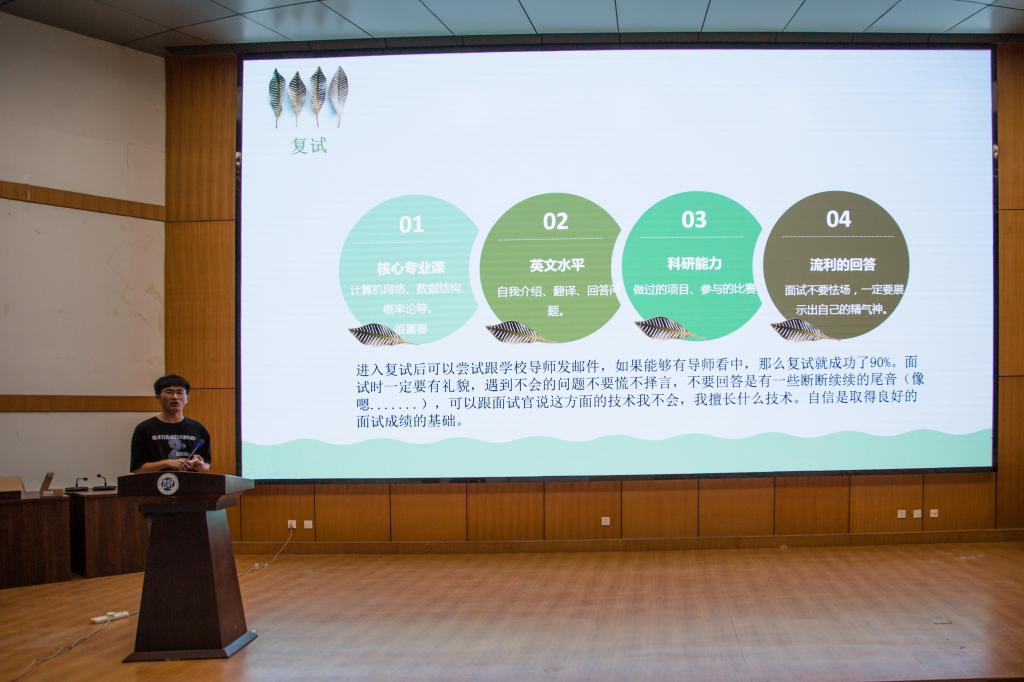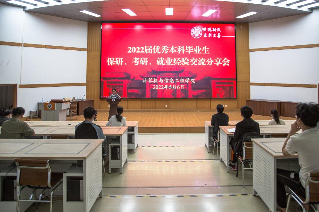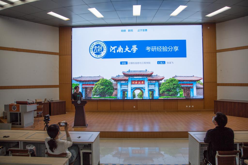 在计算机大楼201教室通过线上线下相结合的方式举办2022届保研、考研、就业经验交流分享会,邀请8位优秀应届毕业生进行经验交流和分享。学院党委副书记曹堃、全体本科生辅导员参加了会议。会议由河南省优秀学生干部、学生会副主席、2019级本科生王诗琦主持。