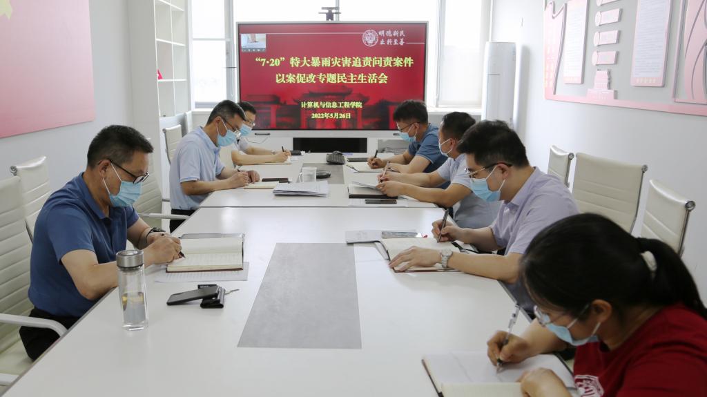 召开“720”特大暴雨灾害追责问责案件以案促改专题民主生活会。学院全体班子成员参加。会议由学院党委书记吕冰主持。