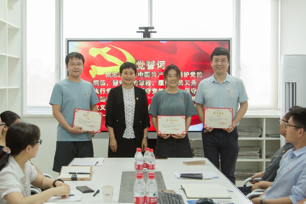 “我志愿加入中国共产党,拥护党的纲领,遵守党的章程,履行党员义务……”在信息安全系支部书记张磊的带领下,支部党员举起右拳,面向党旗庄严宣誓。句句铿锵的誓言,把对党忠诚化为勇担使命的强大动力。冯淑霞为支部2022年上半年“学习强国”学习标兵马宇翔、张磊、郭小丁颁发荣誉证书,鼓励大家用马克思主义中国化最新成果武装头脑、做到学以致用。