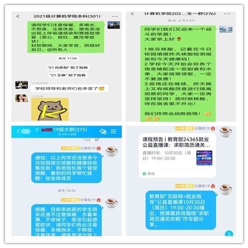 收集相关数据、关注学生情况、倾听学生声音、解决学生问题、开导劝解学生,是他们每日的必修课。“日报告”“零报告”,一条条数据,一张张表格,一个个紧急电话,一句句温馨话语,一遍遍说不完的“唠叨”,一幕幕感人至深的瞬间……他们24小时全程在线,不知疲惫昼夜奋战。他们携手共筑疫情防控防线,用实际行动践行着学工人的使命和担当。