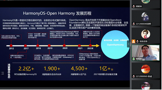 蒋相坤以“鸿蒙操作系统(HarmonyOS)关键核心技术”为主题,首先介绍了移动应用开发作为软件和互联网的热门技术,引出鸿蒙操作系统成为开启全场景体验的钥匙。然后详细介绍了OpenHarmony全场景分布式操作系统核心技术,鸿蒙操作系统是基于微内核的,以分布式技术为基础的下一代分布式多端智慧化操作系统。最后蒋总介绍了OpenHarmony&鸿蒙智联在影音娱乐、移动办公、智慧出行等重点场景的应用。