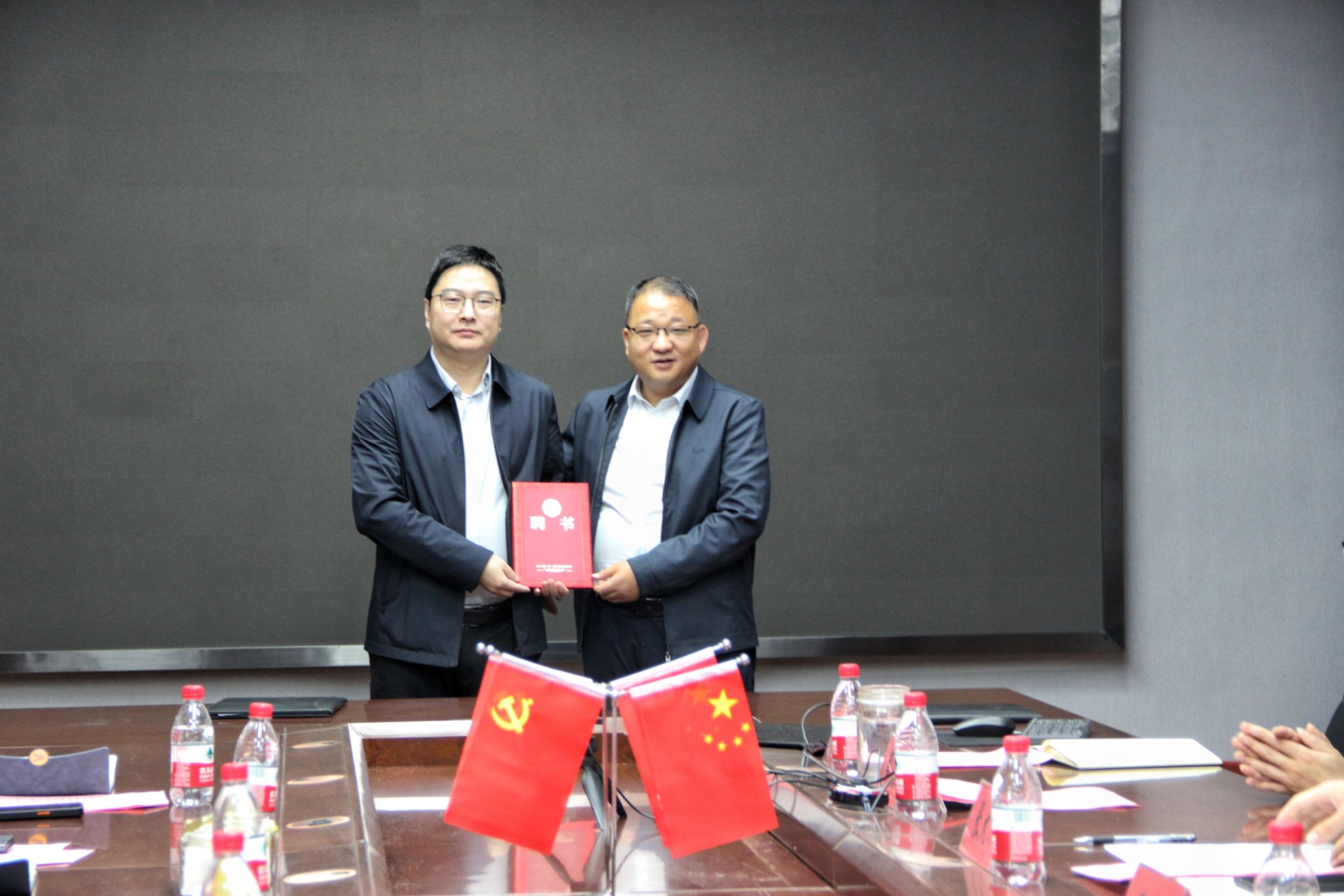 (密码学院)宣传片,周志民和朱开印代表双方签署战略合作协议,周志民为杨林赐、黄野青两位北京数字政通科技股份有限公司高管颁发了校外导师聘书。