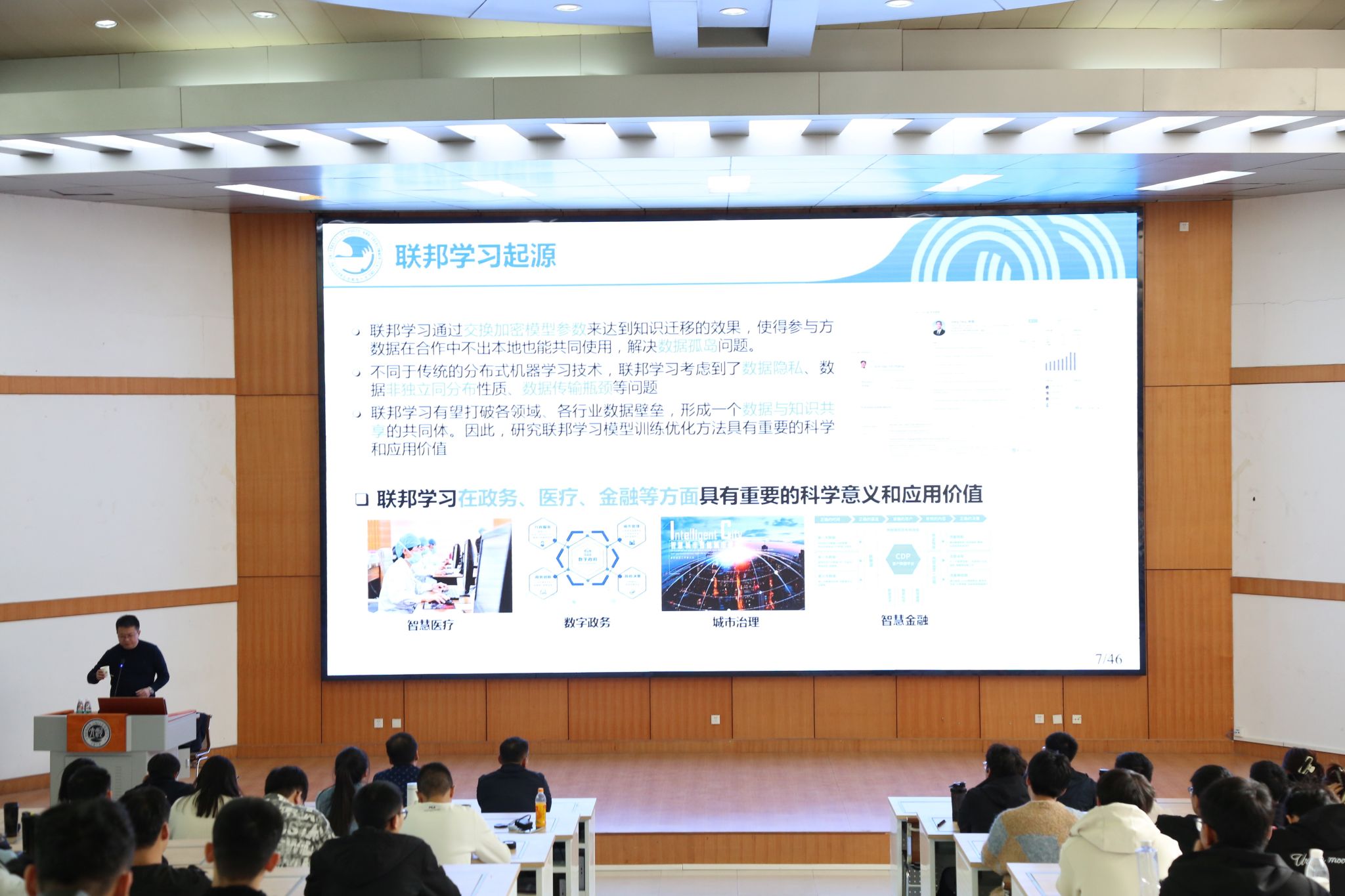 师生作主题为《联邦学习:对“数据孤岛”与“数据安全”困境的破局》的学术报告,报告会由学院副院长左宪禹教授主持。报告会在学院201会议室举行,学院教师和研究生参加了本次报告会。