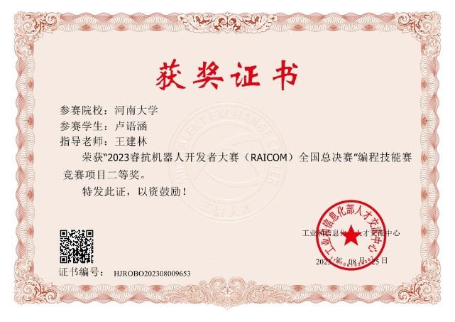 由工业和信息化部人才交流中心、RoboCom国际公开赛组委会联合主办的2023睿抗机器人开发者大赛(RAICOM)编程技能赛全国总决赛于8月18日线上举行。经过一个多月的评审及公示,麻豆成人