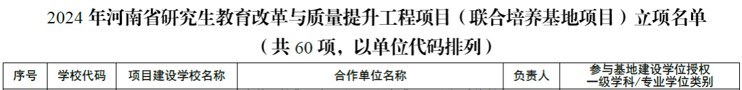 根据《河南省教育厅河南省发展和改革委员会河南省财政厅关于印发<河南省学位与研究生教育提升行动计划(2021—2025年)>的通知》(豫教研〔2021〕79号)精神,河南省教育厅组织开展了2024年河南省研究生教育改革与质量提升工程立项工作。