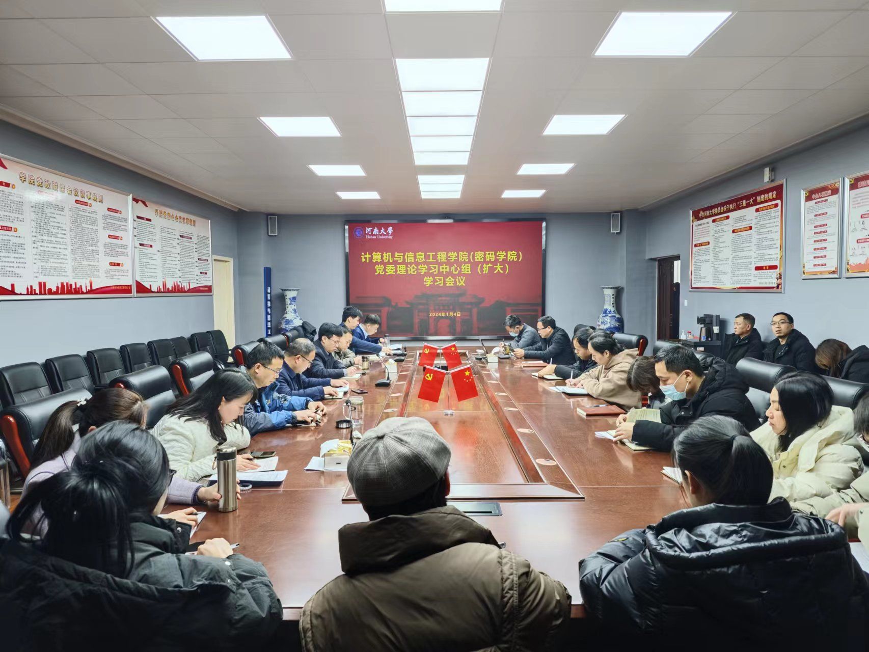 举行党委理论学习中心组(扩大)学习会议。学院领导班子成员、党委委员、两办负责人、党支部书记、系主任和科级机构负责人等参会。会议由党委书记周志民主持。