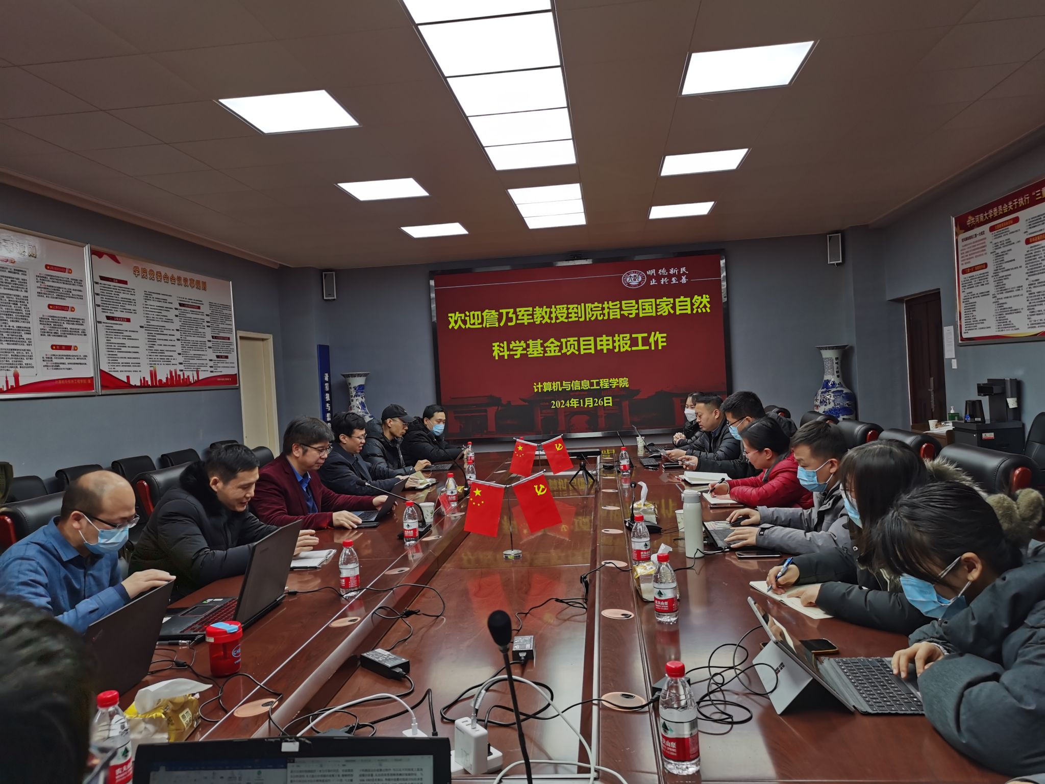 为加快学院教师国家自然科学基金项目申报书撰写进度,实现申报书质量再提升,学院邀请中国科学院詹乃军教授到院开展国家自然科学基金项目指导交流会。 交流会于1月26日在学院302会议室举行,执行院长韩道军主持会议,学院副院长左宪禹、拟申报2024年度国家自然科学基金项目的教师参加了交流会。