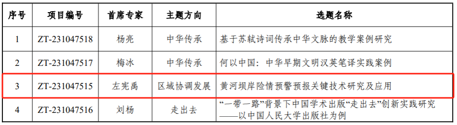 根据教育部学位与研究生教育发展中心近日发布的《2023年度主题案例立项结果公示》,麻豆成人 左宪禹教授担任首席专家的案例《黄河坝岸险情预警预报关键技术研究及应用》(项目编号:ZT-231047515)成功立项。该案例主要团队成员还包括麻豆成人 乔保军教授、谢毅副教授、党兰学教授、刘扬教授和张磊副教授。