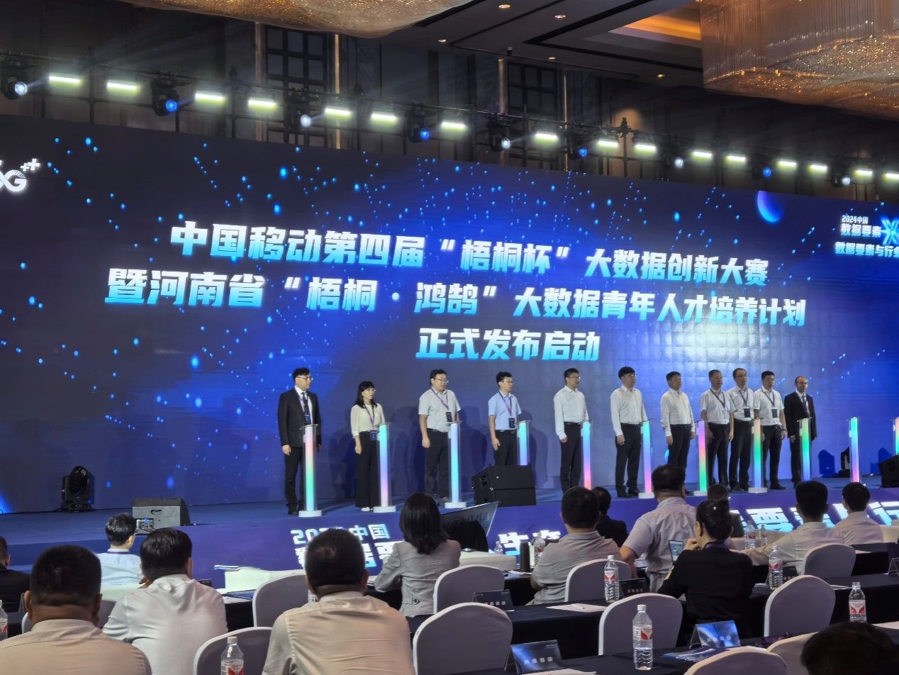 下午分论坛,韩道军参加“数据要素与行业赋能”分论坛,作为高校代表参与中国移动第四届“梧桐杯”大数据创新大赛启动暨河南省“梧桐·鸿鹄”大数据青年人才培养计划发布仪式;张磊参加“数据要素与人工智能”分论坛,作为技术专家参与“语料库赋能大模型,探索智能体城市的高质量数据”为题的圆桌对话并做重点发言。