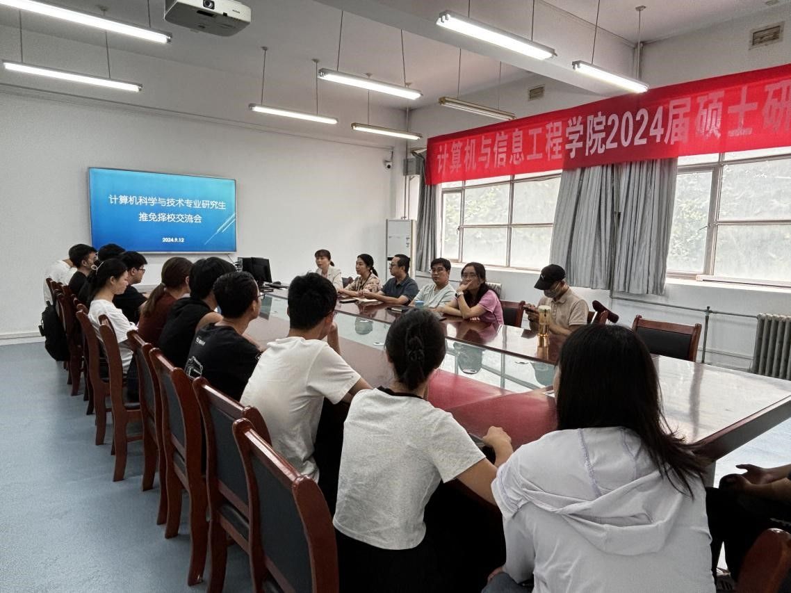 计算机系在学院318会议室举行交流会,系党支部书记赵雅靓,教师代表张瑾、王建林、闫永航、张俊涛,获得研究生推免资格学生和部分准备报考研究生的同学参加了本次交流会。交流会由系主任苗茹主持。数据科学系在学院213实验室组织交流会,系党支部书记周黎鸣,罗慧敏、袁彩虹等13位老师以及本专业部分同学参加交流会。会议由数据科学系主任李征主持。