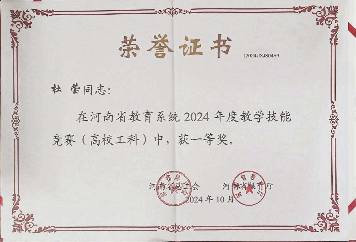 2024年11月,河南省总工会、河南省教育厅联合下发《关于河南省教育系统2024年度教学技能竞赛获奖情况的通报》(豫工文〔2024〕89号),麻豆成人