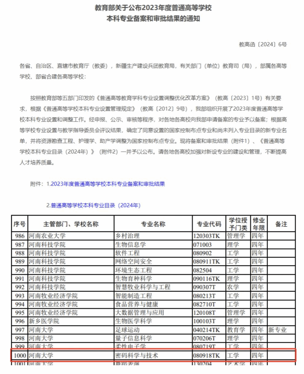 三、获批“密码科学与技术”本科专业