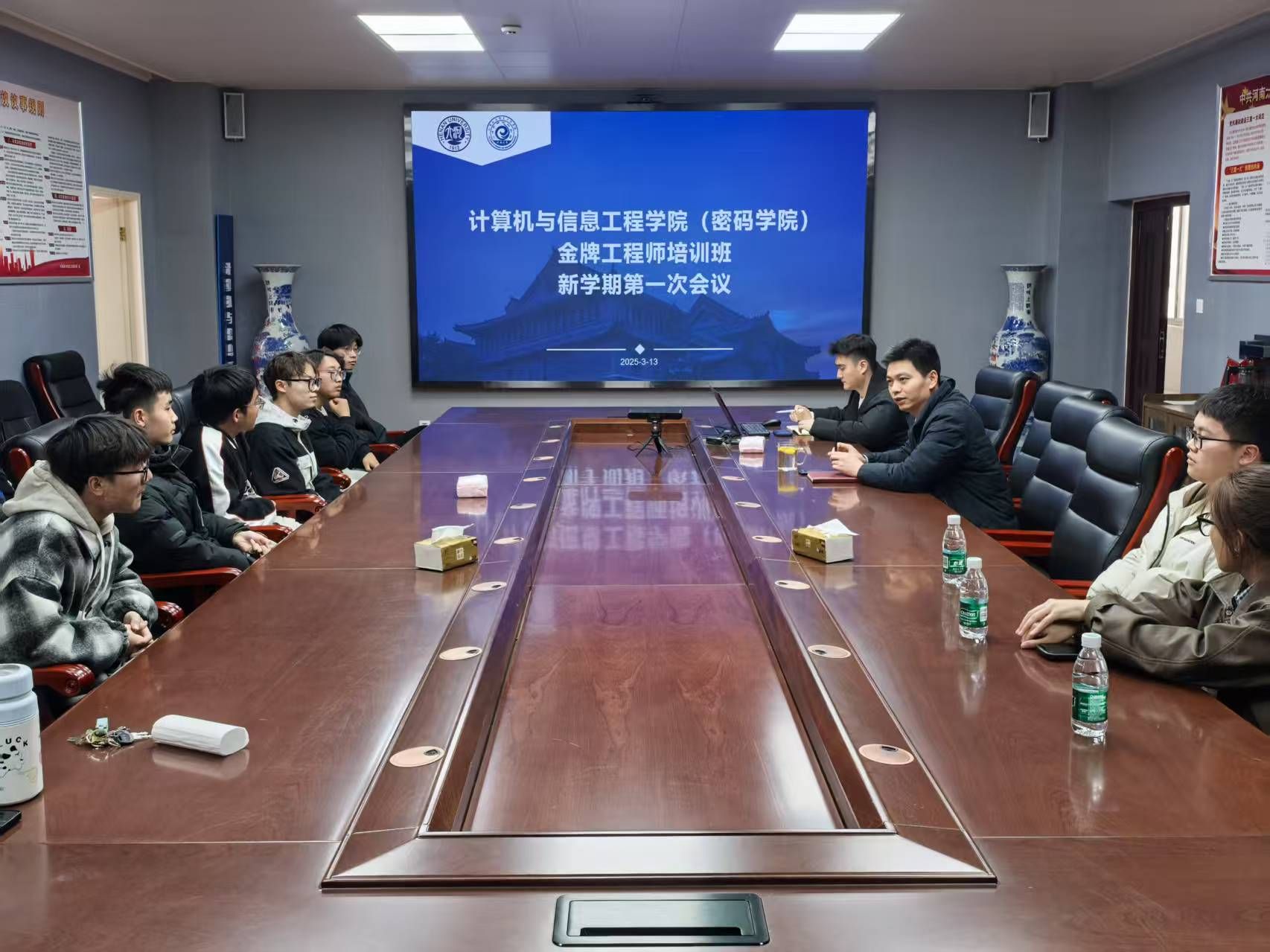 在302会议室举行金牌工程师培训班新学期第一次会议。学院党委副书记张大帅,团委负责人丛震宇参加会议。
