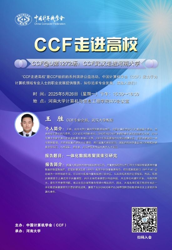 王胜:一体化数据库聚簇索引研究(时间:5月26日)