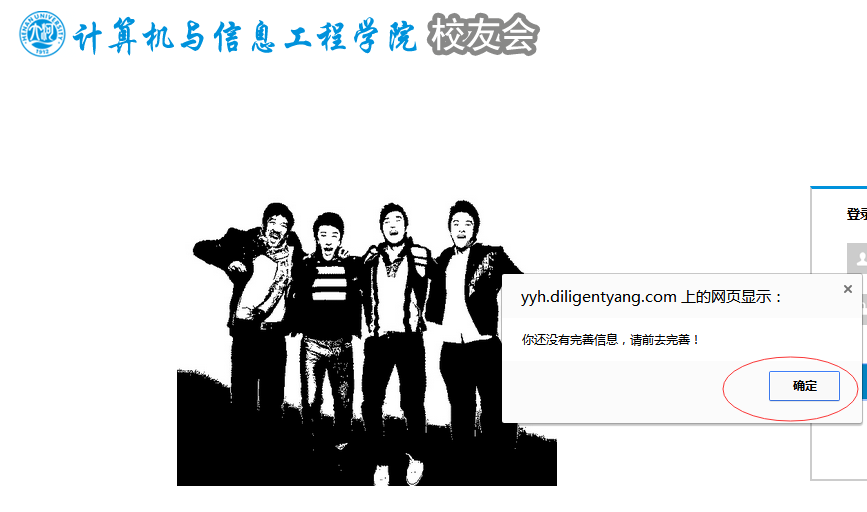 2.注册完成之后,请登录并继续完善个人资料。登录时,用户名为学号或者姓名。重名并且密码设置一致的校友,只能采取学号登录。