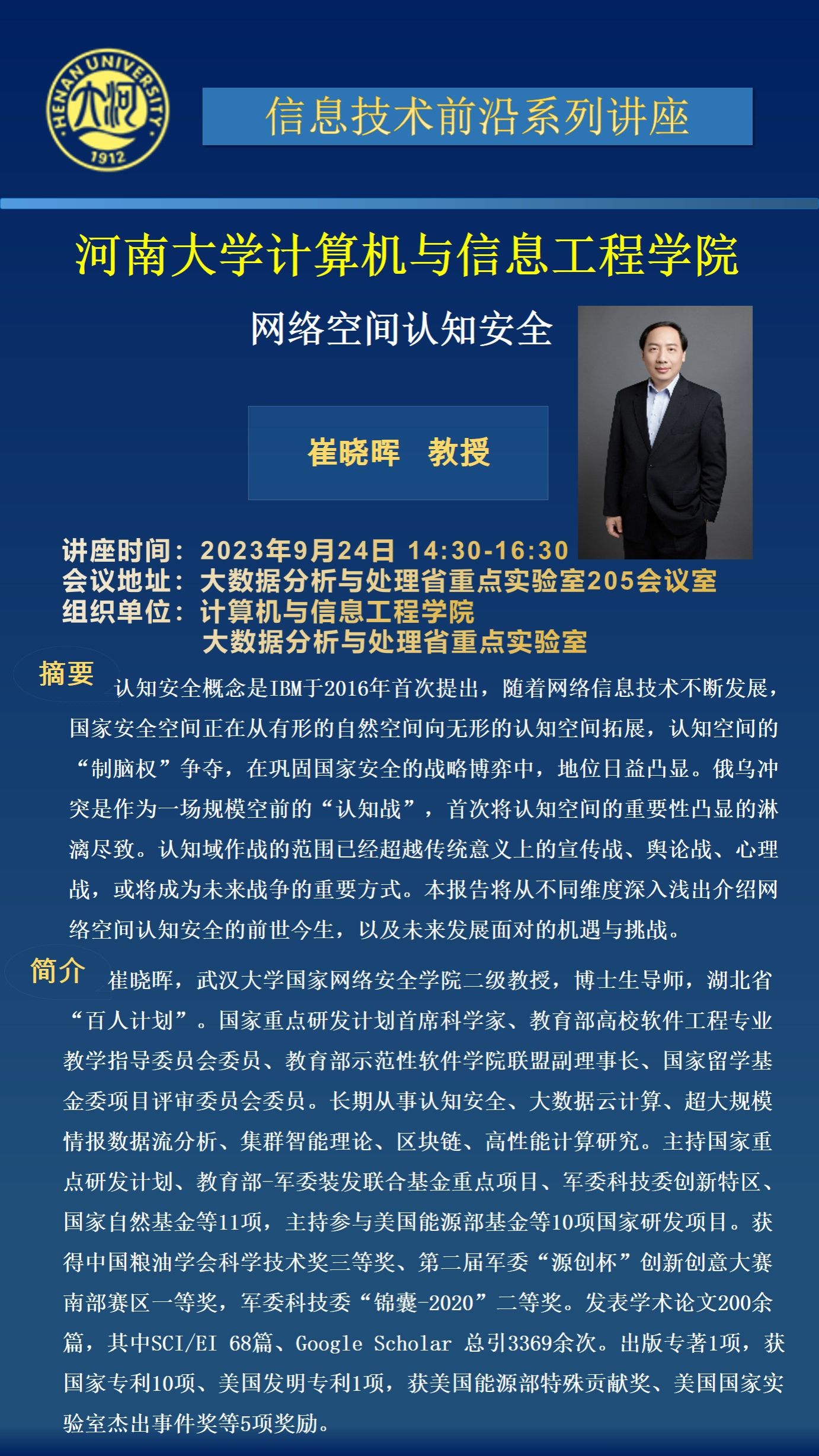 崔晓晖:网络空间认知安全(时间:9月24日)
