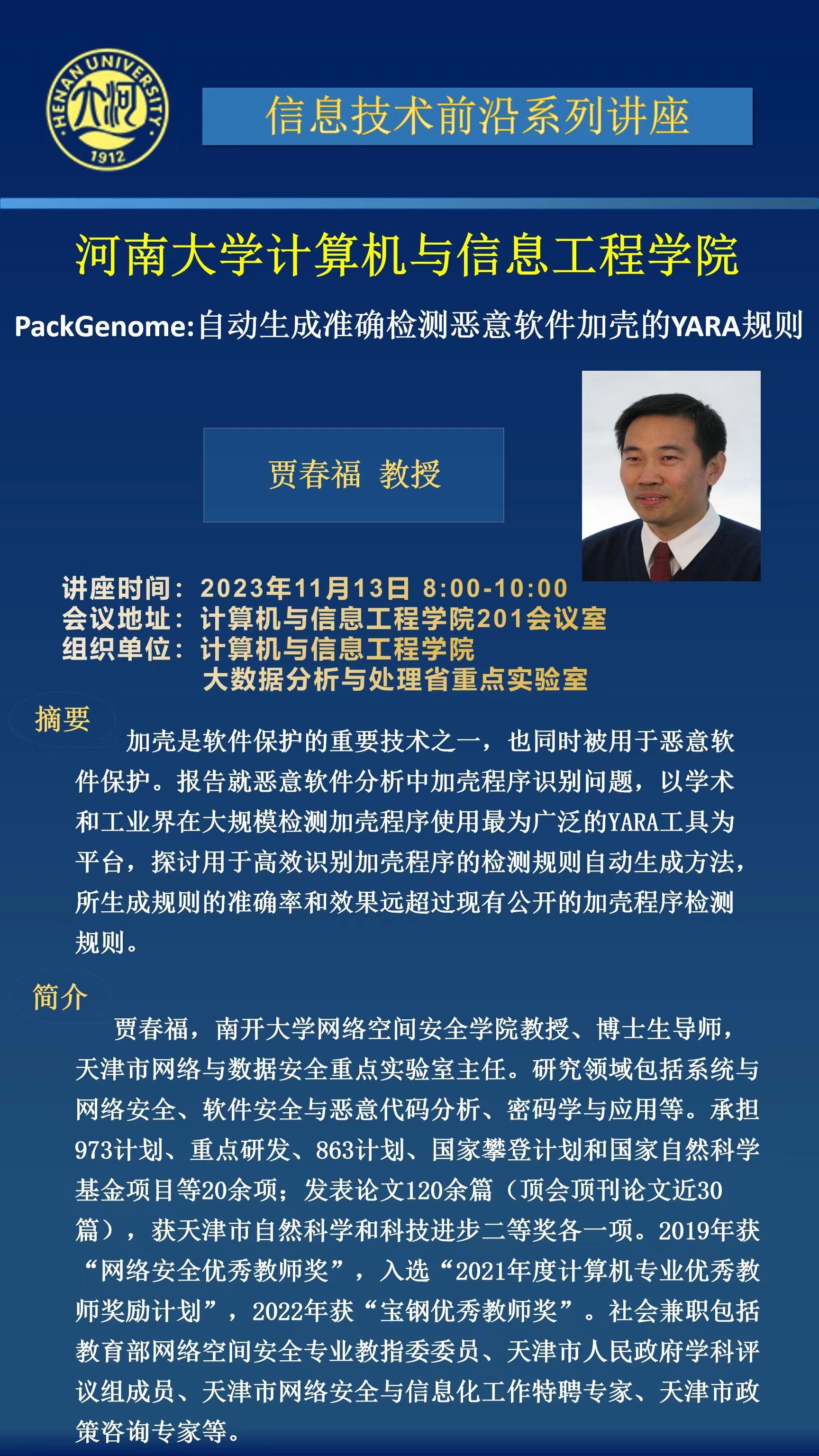 贾春福:PackGenome:自动生成准确检测恶意软件加壳的YARA规则(时间:11月13日)
