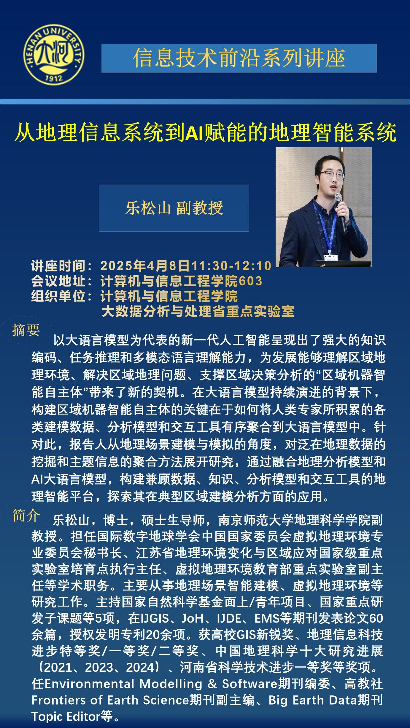 乐松山:从地理信息系统到AI赋能的地理智能系统(时间:4月8日)