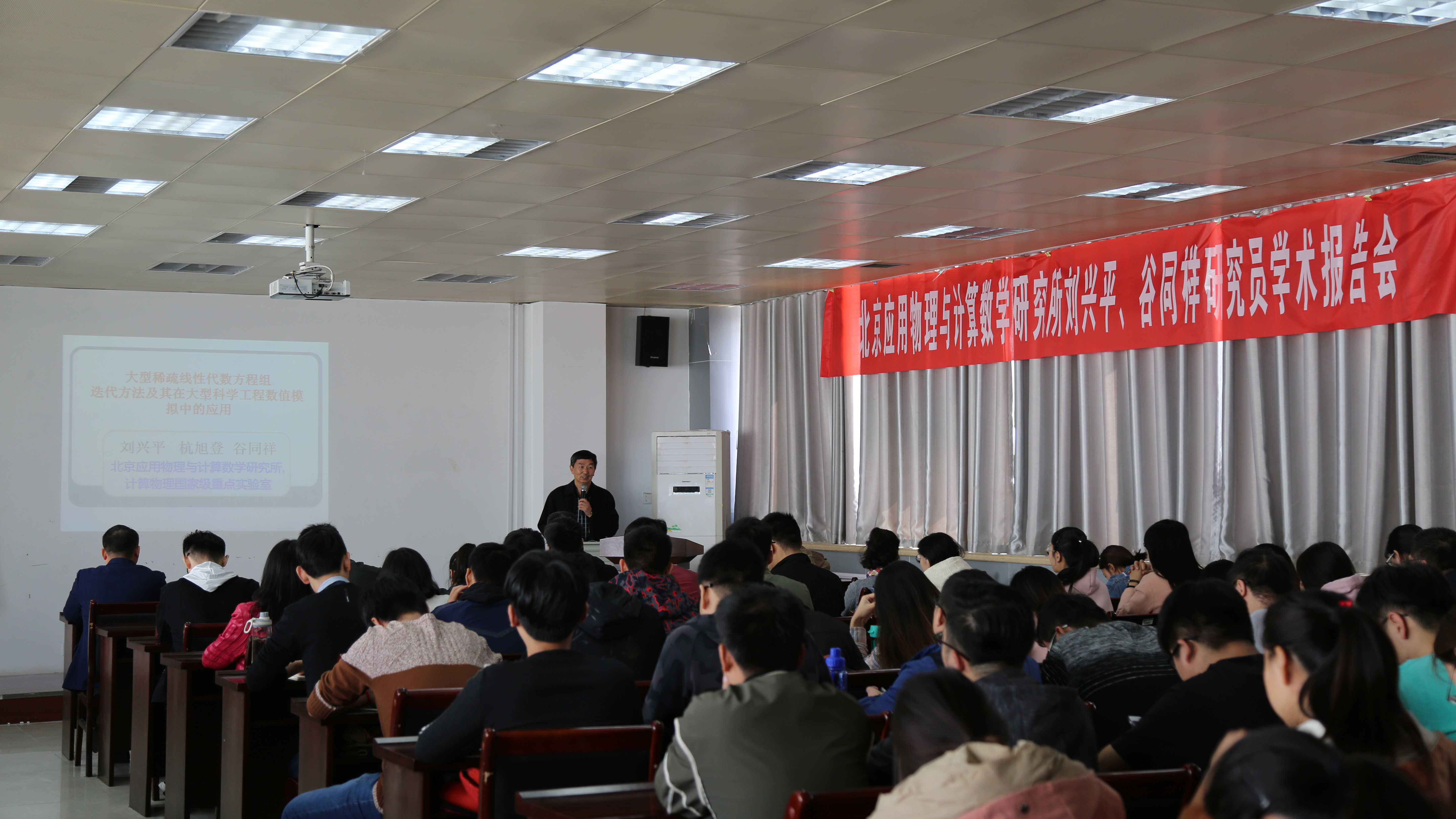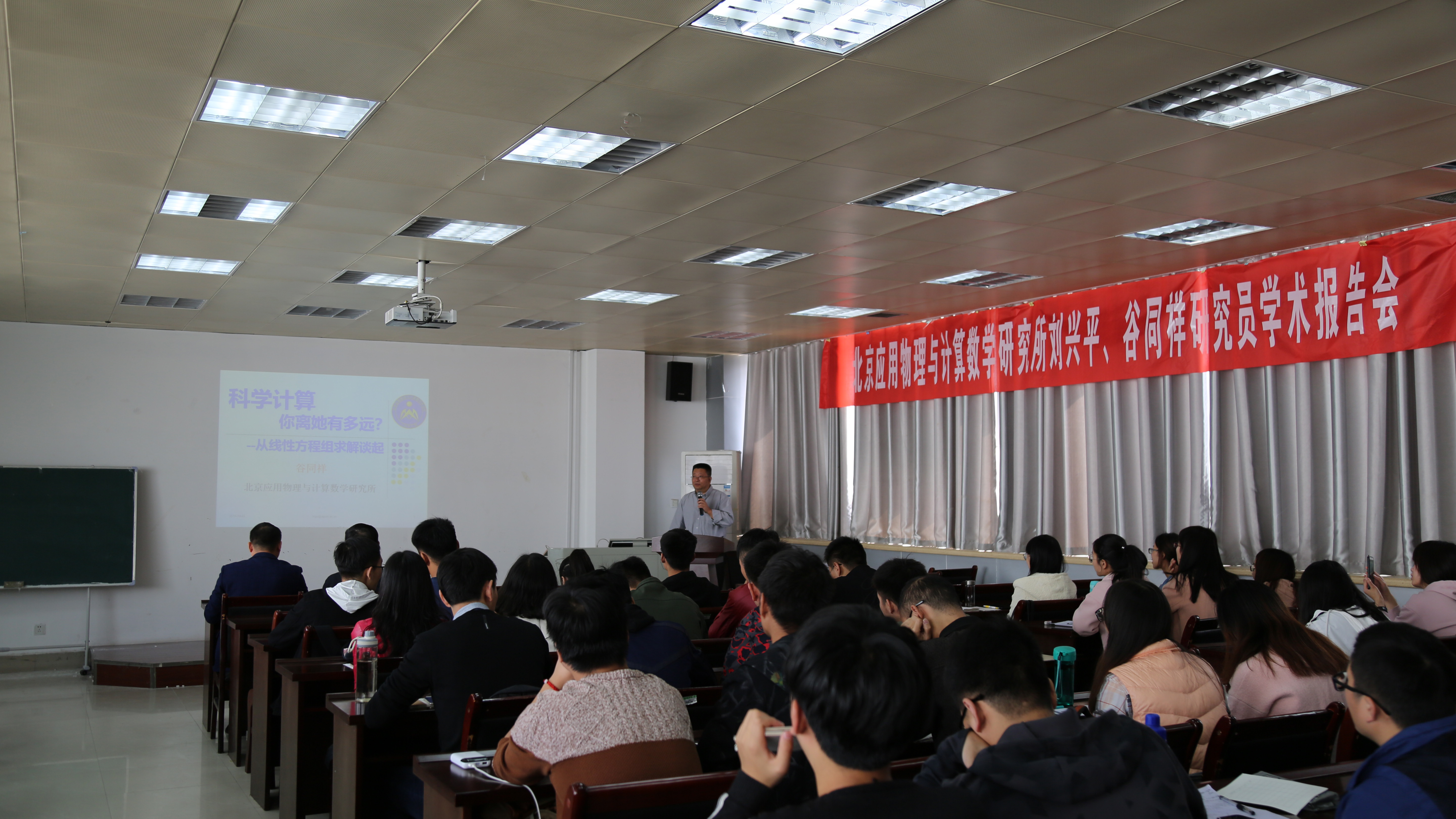 分别作了题为“大型稀疏线性代数方程组迭代算法在大型科学工程数值模拟中的应用案例”与“科学计算,你离她有多远?—从线性方程组求解谈起”的学术报告。本次报告在麻豆成人