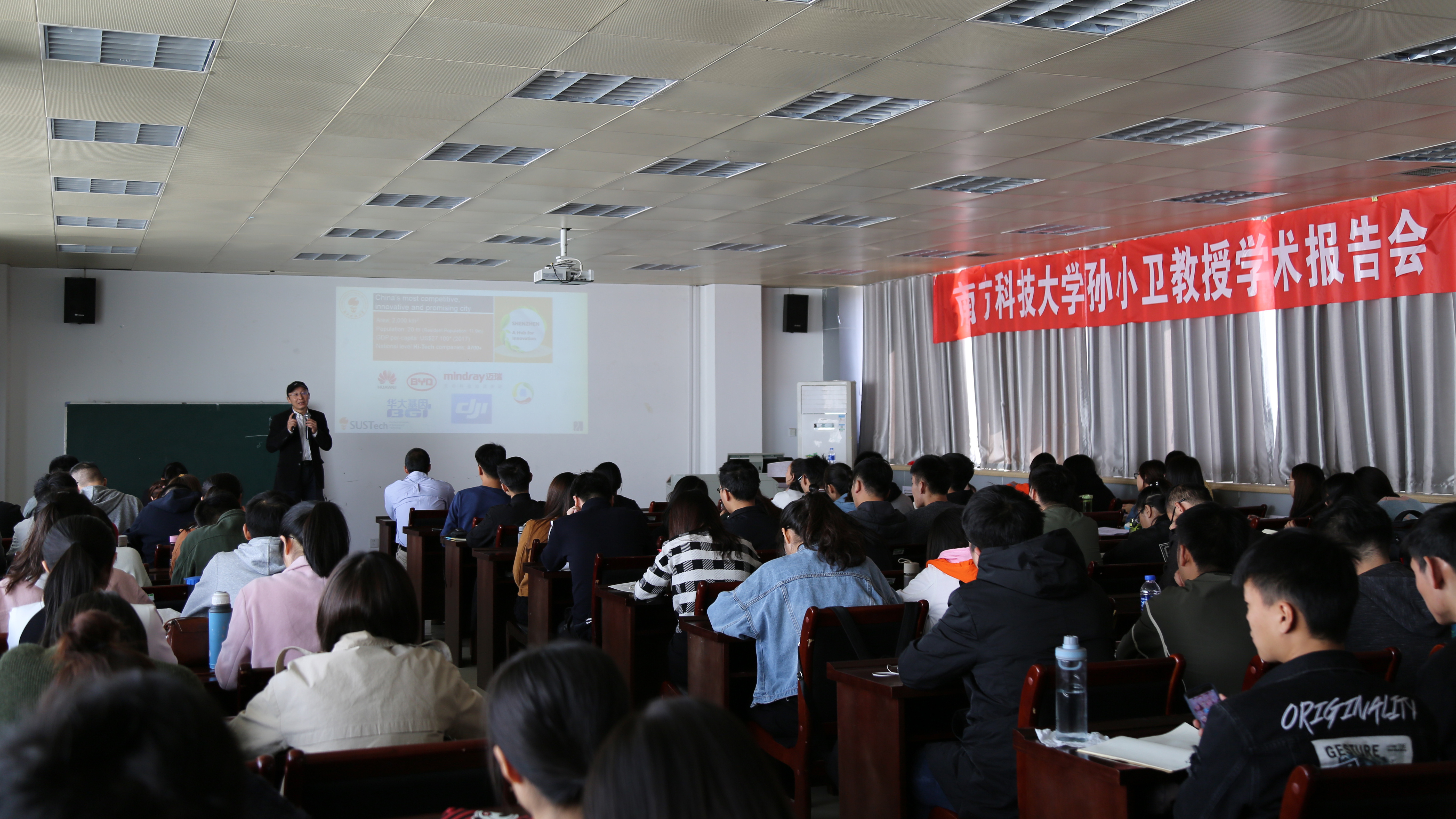 邀请,南方科技大学孙小卫教授在学院603会议室做了题为“超宽色域显示–色彩的革命”的学术报告,百余名师生聆听了此次学术报告。