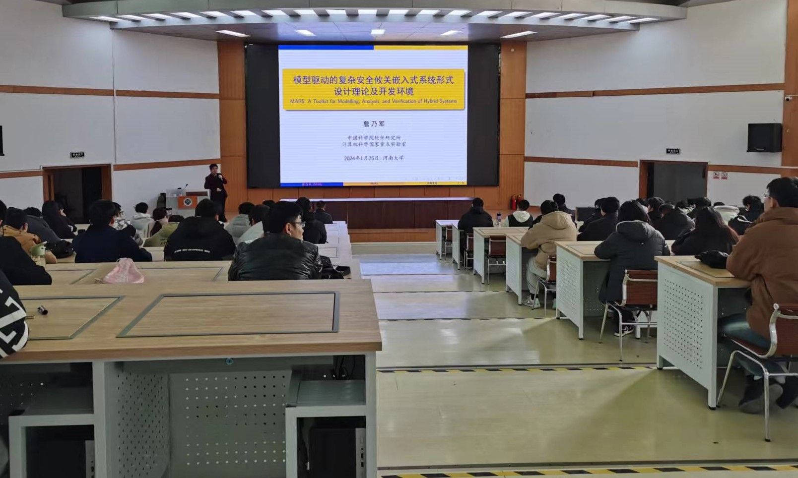 师生作主题为《模型驱动的复杂安全攸关嵌入式系统形式设计理论及开发环境》的学术报告,报告会由学院副院长左宪禹教授主持。报告会在学院201会议室举行,学院教师和研究生参加了本次报告会。
