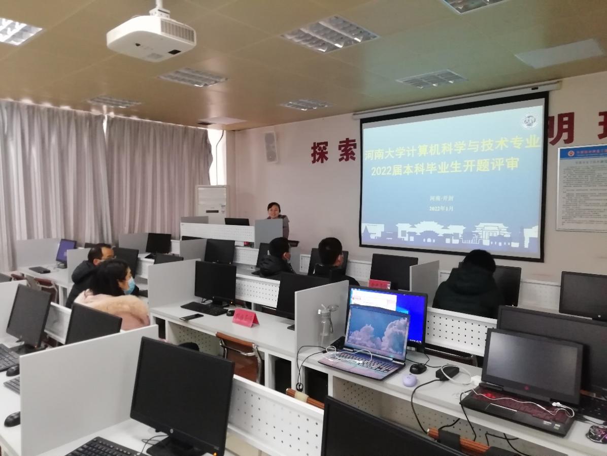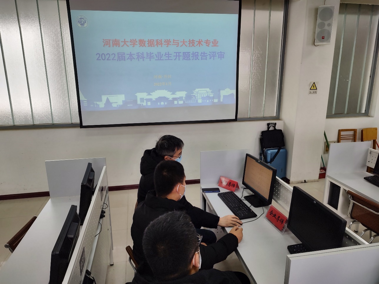 本科毕业论文(设计、创作)工作管理办法》(校发〔2018〕317号)相关要求,为进一步做好2022届本科生毕业设计工作,确保毕业设计选题质量,学院计算机科学与技术、数据科学与大数据技术、信息安全三个专业于2022年1月6日在计算机大楼3个实验室开展了毕业设计选题评审活动。此次活动邀请河南海融软件有限公司、河南3A软件教育、河南信安世纪科技有限公司的工程师参加了此次评审活动。
