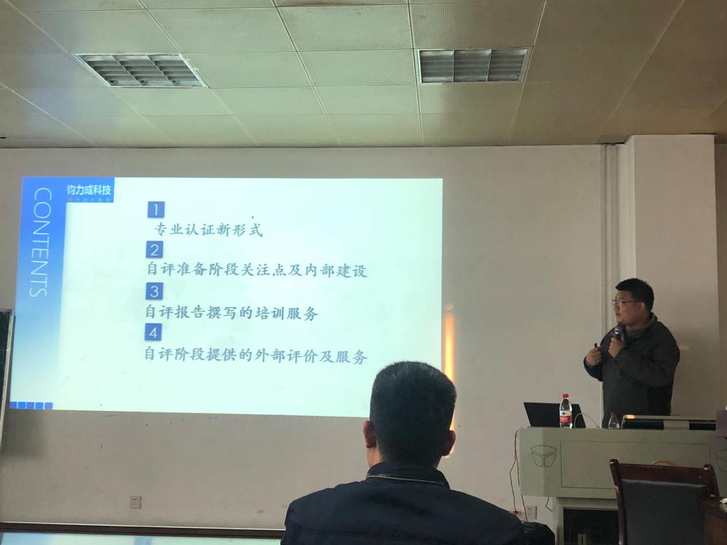 会上,学院邀请了钧力成科技有限公司技术负责人胡钦瑜老师向参加会议的老师进行了汇报。胡老师结合近年来工程教育专业认证形势,从专业认证的新形式、自评准备阶段关注点及内部建设、自评报告撰写的培训服务和自评阶段提供的外部评价及服务四个方面详细介绍了该公司为学校工程教育认证所提供的体系化产品及解决方案,帮助认证专业形成支撑材料,反映指标达成程度,顺利完成自评报告的撰写工作。